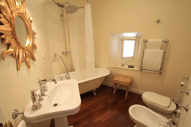 Il terzo bagno è arredato in antico stile design e si trova al piano superiore della zona notte..